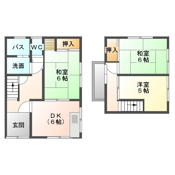 | 間取り詳細 | 和室6帖・DK5帖・和室6帖・洋室4.5帖 |
